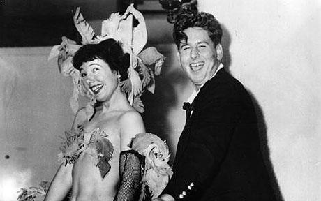 A year later they were married again in England. Mr Moynihan, a devotee of rock'n'roll, resigned his reserve commission in the Brigade of Guards and played the bongo drums at his wife's worldwide cabaret appearances. [The Times]
